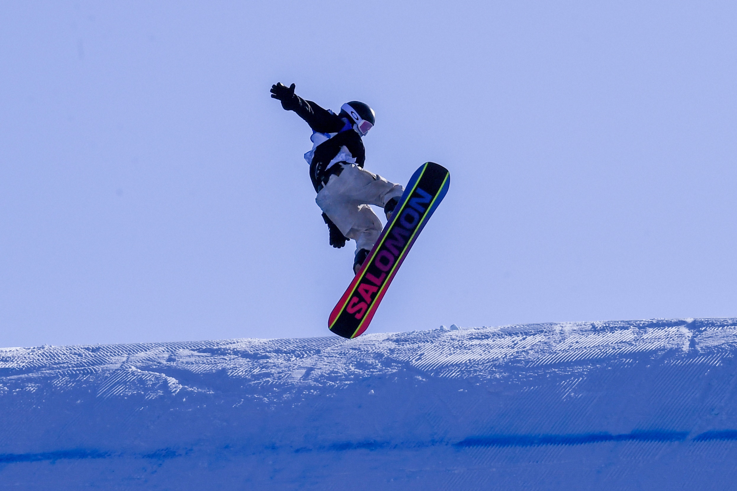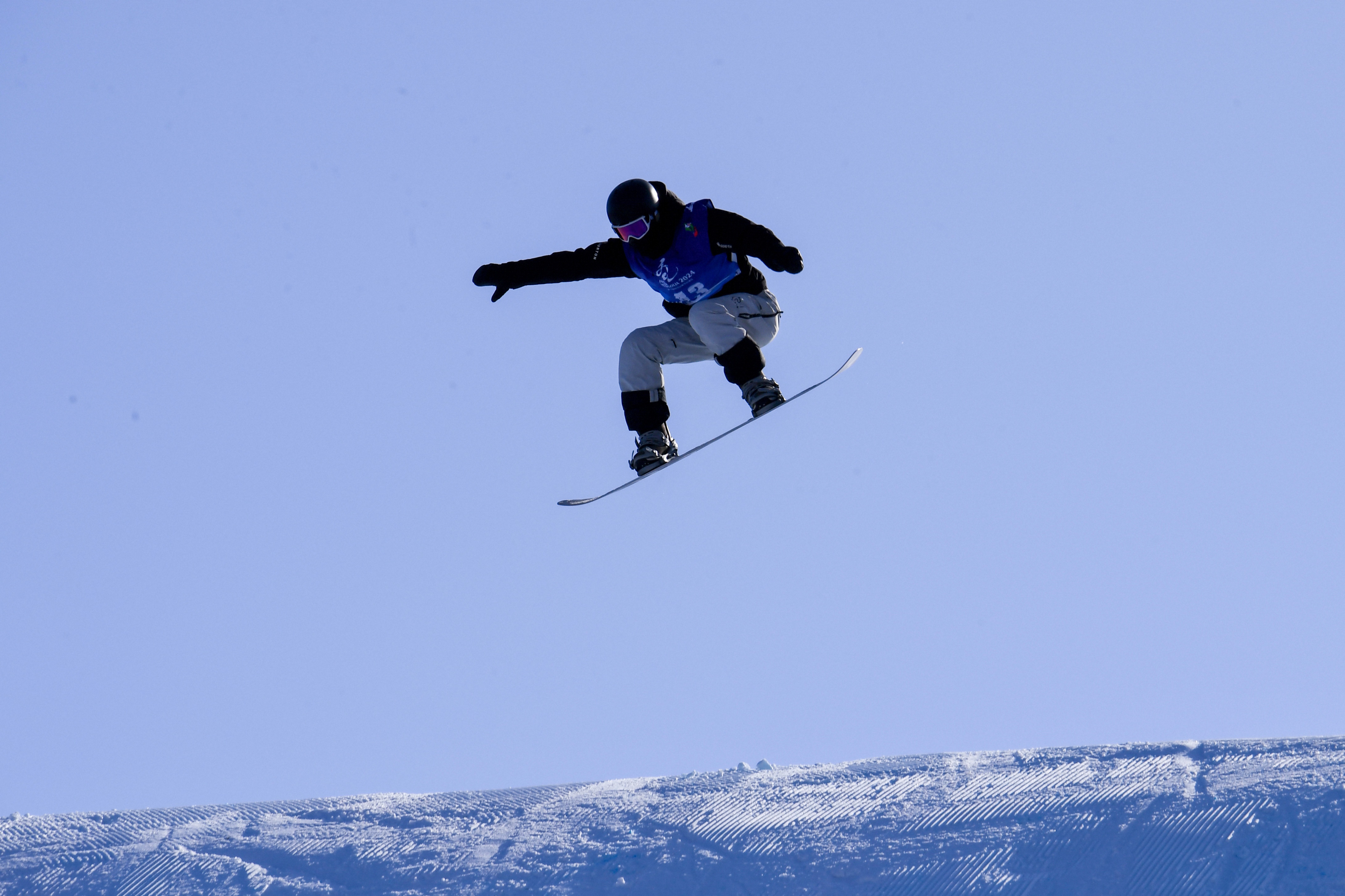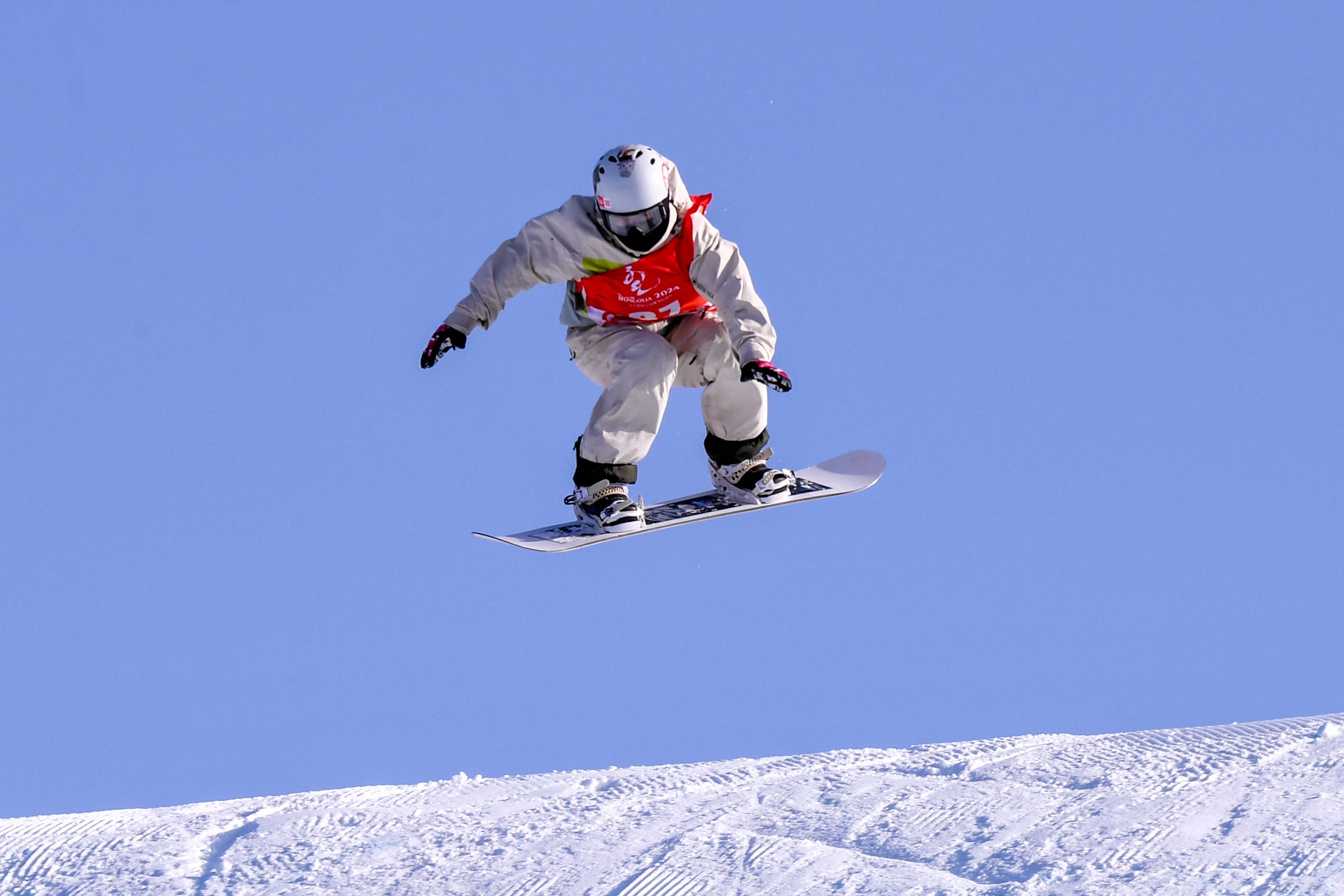 2月23日,第十四届全国冬季运动会单板滑雪公开组大跳台决赛。解放军报记者栾铖摄