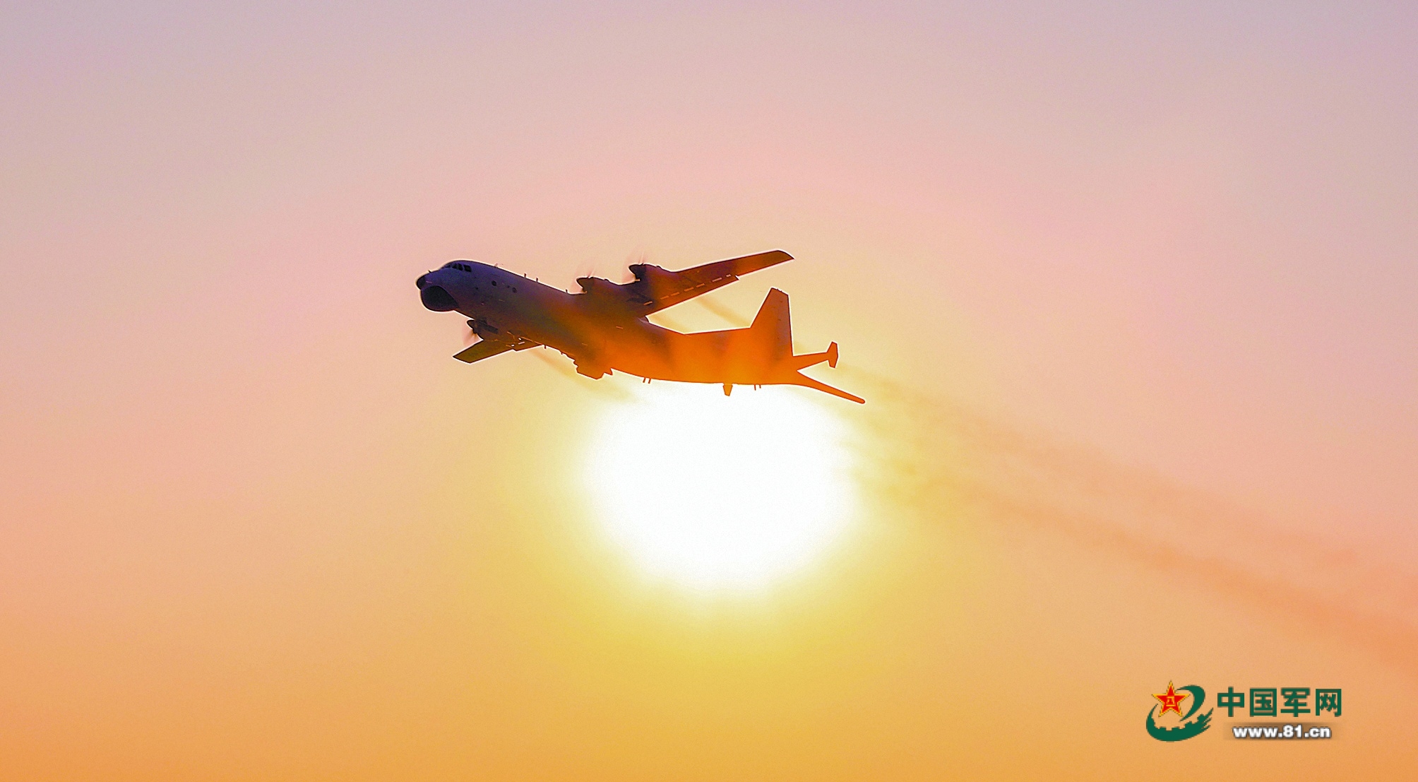 夕阳下,战机升空训练。